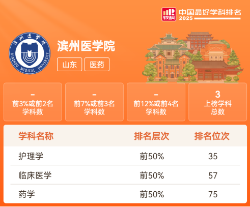 2025年10月15日,高等教育评价专业机构软科正式发布“2025软科中国最好学科排名”。排名榜单包括98个一级学科和5个专业学位类别,各学科排名对象是在该学科设有研究生学位授权点的所有高校,发布的是在该学科排名前50%的高校,共有517所高校的5344个学科点上榜。我校在本轮排名中共有临床医学、药学、护理学3个学科进入前50%。