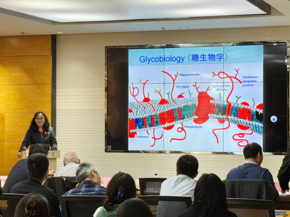 李晋萍教授与张晓副教授先后作了精彩的学术报告。李晋萍教授以“Sugars — Novel Pharmaceutical Targets ?”为题,从糖生物学视角系统剖析了“糖链”作为新型药物靶标的潜力,深入讲解了其在病原体识别与信号转导等生命过程中的重要作用;她进一步以硫酸乙酰肝素(HS)为例,指出其在胚胎发育、抗疟及促进分娩等方面的多样药理活性,并强调基于HS结构开发的拟肝素类分子有望成为抗癌抗炎新策略。硫酸乙酰肝素酶抑制剂在临床前研究中已显示出与免疫治疗的协同增效,为糖类药物开发开辟了新路径。