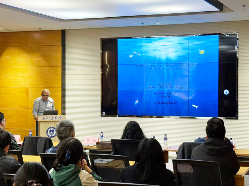 张晓副教授在题为“Multiple Pathological Mechanisms of Alzheimer’s Disease and the Intervention Perspectives”的报告中,从诊断标准、临床表型逐步深入到分子机制,重点阐释了硫酸乙酰肝素在Aβ清除过程中的关键调控作用;其团队利用转基因小鼠模型发现,过表达硫酸乙酰肝素酶会改变HS的结构与功能,从而影响Aβ清除、神经炎症反应及血脑屏障物质转运,该机制为干预Aβ清除提供了潜在药物靶点。在随后的互动环节中,现场师生围绕两位教授的报告内容踊跃提问,学术对话精彩纷呈,将全场研讨氛围推向高潮